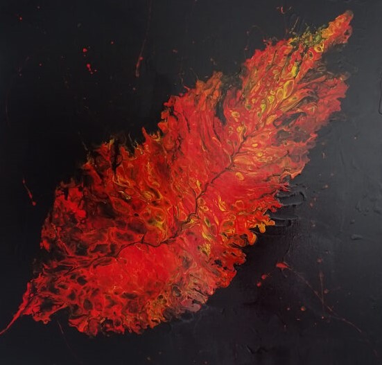 “Le pouring est une pratique de peinture aléatoire, cela me permet d’avoir toujours une toile différente même si la technique reste la même.”